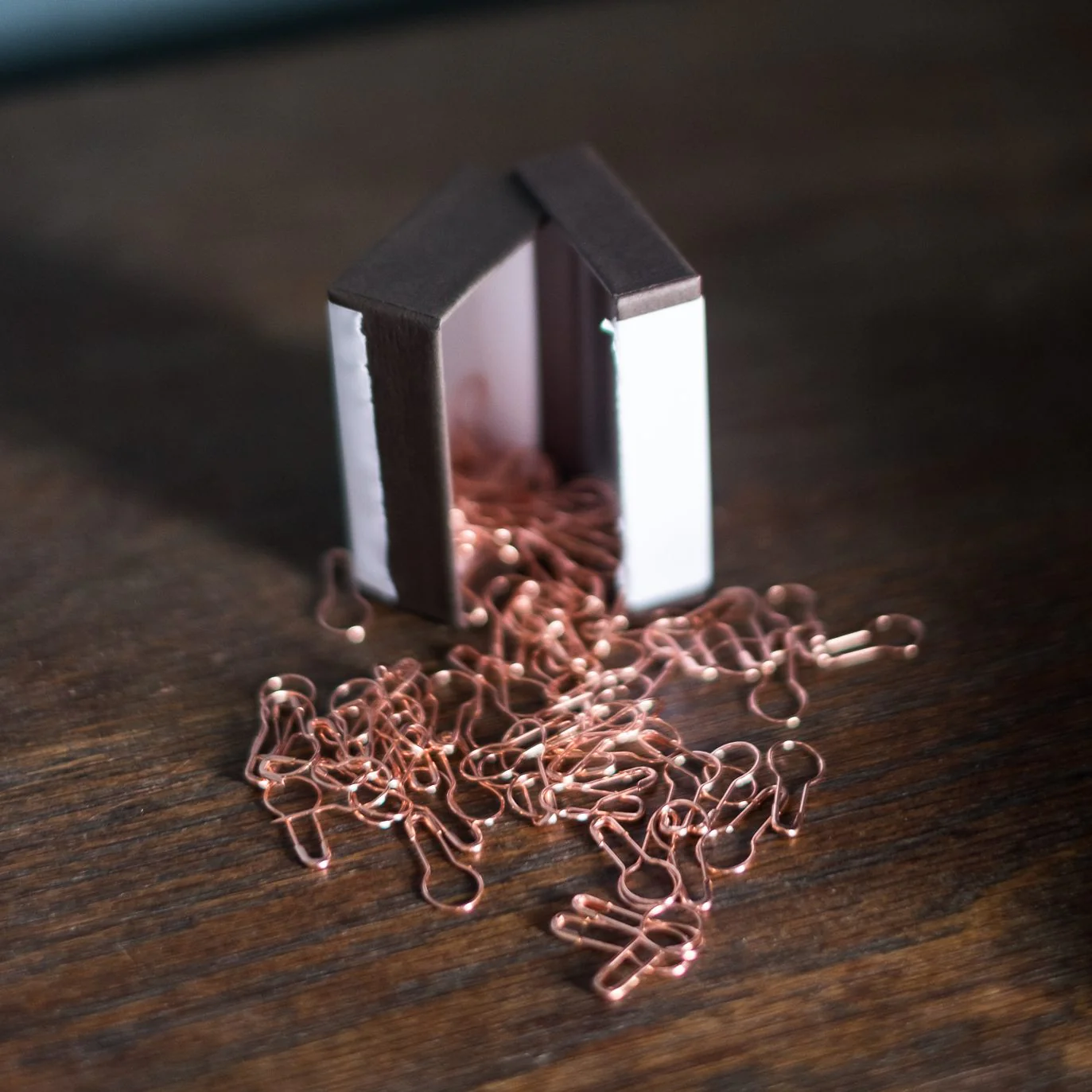 Beautifully packaged Copper Bulb Pins by Merchant & Mills. Useful safety pins, they are also great to use as stitch marker when knitting. 21mm long