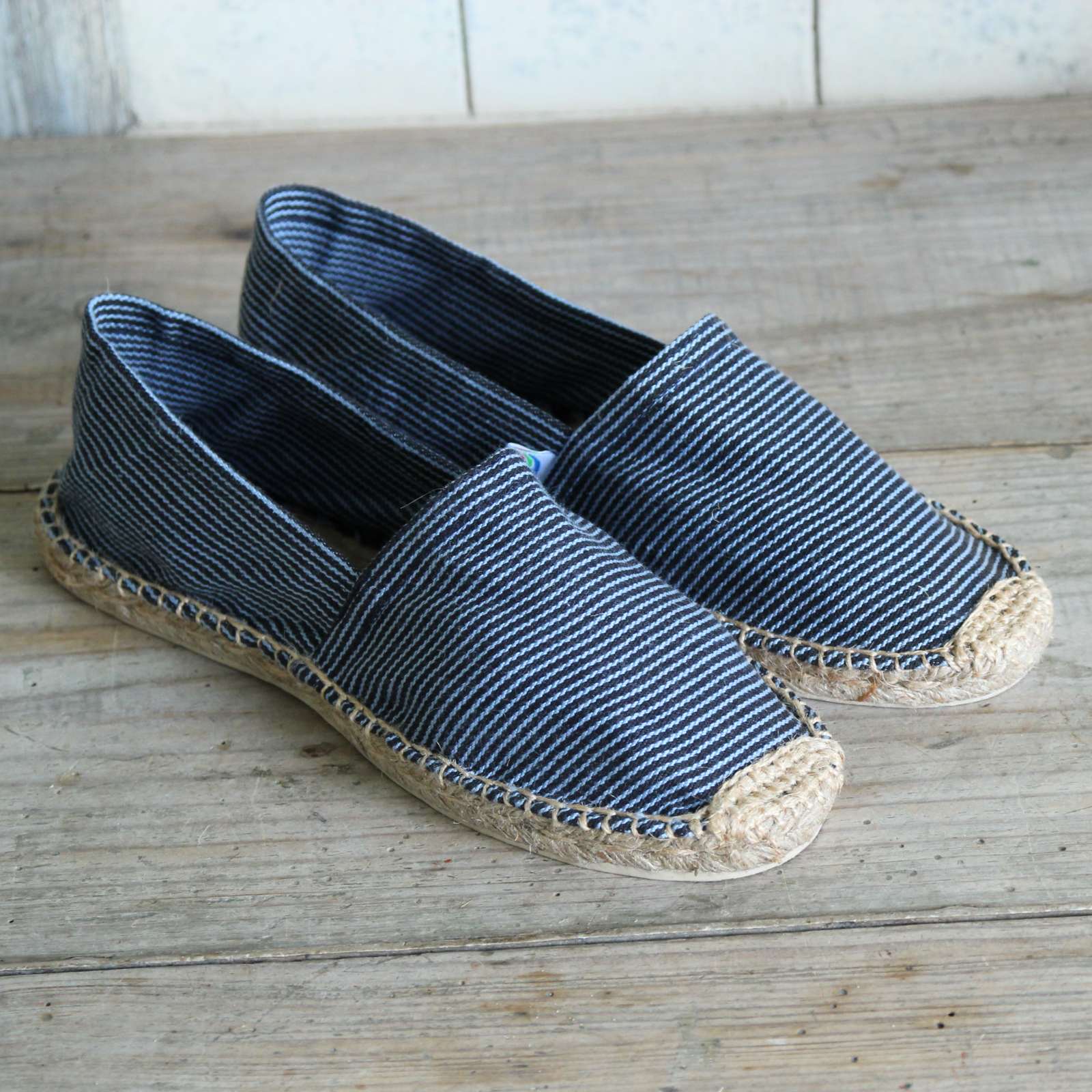 Classic Espadrilles, the perfect shoes for summer! Availablie in Black and Blue Stripe