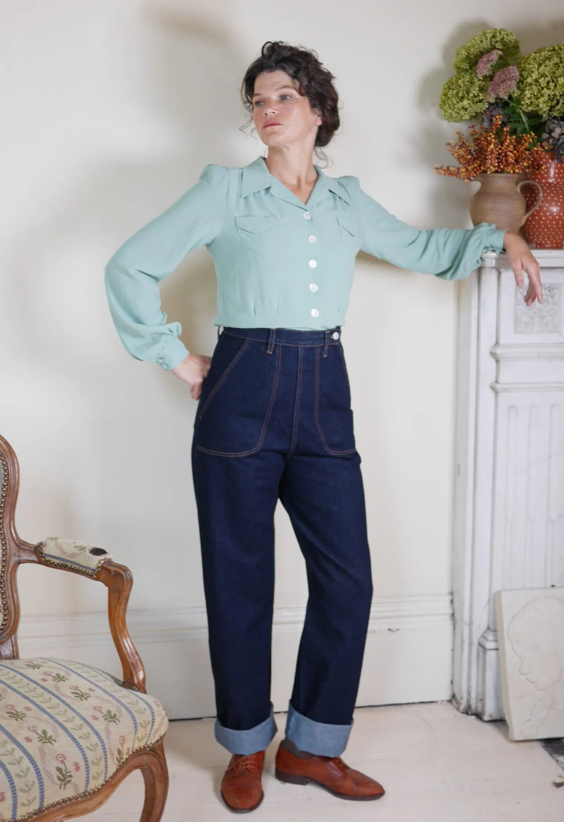 The Classic Jeans are high waisted, wide legged jeans. Made from a soft indigo denim, with a side zip hidden inside the pocket, belt loops and patch pockets on the back.