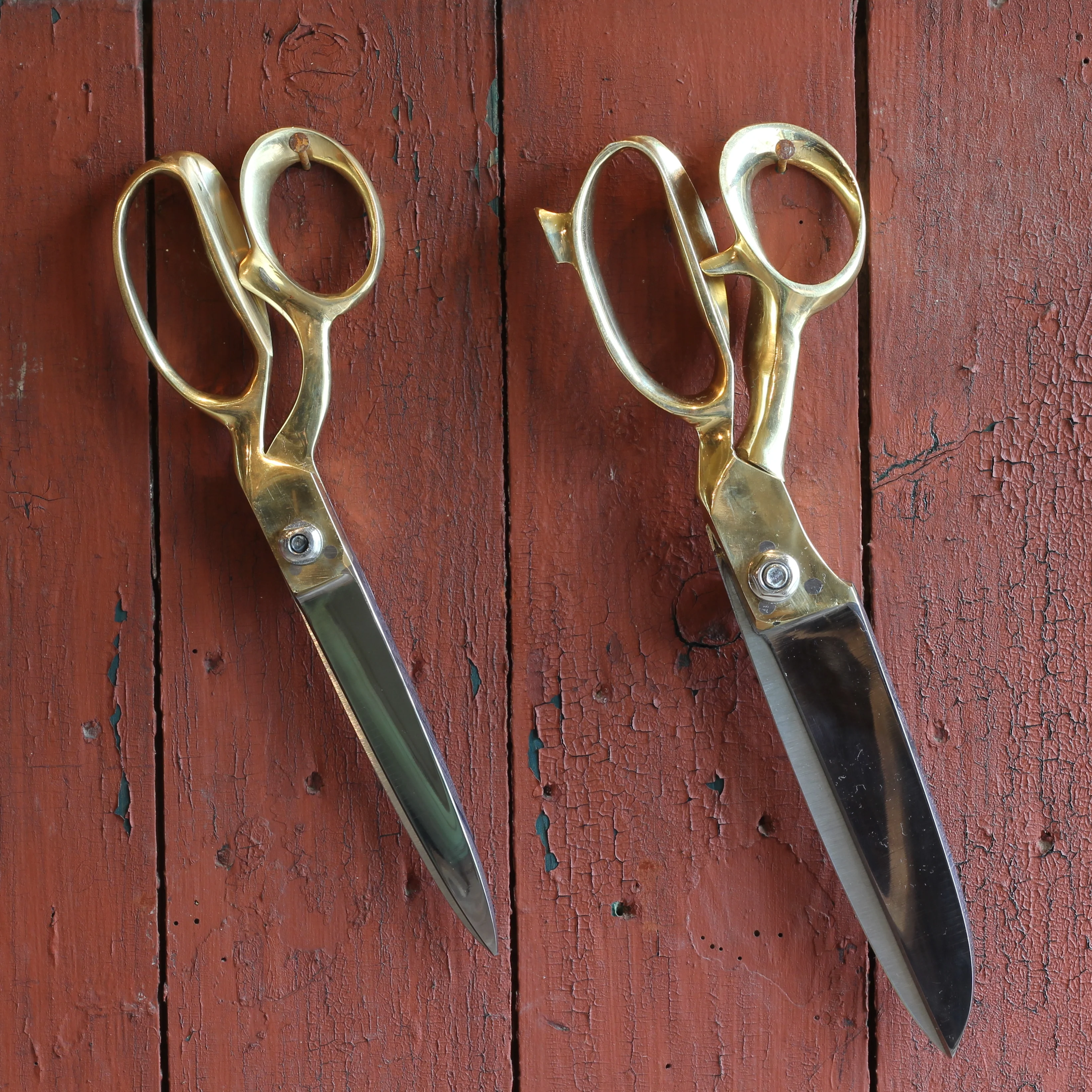 Gold scissors available in a variety of sizes. Made from steel and brass, these household scissors are extra sharp, perfect for cutting fabric. Available in 8 inch, 9 inch, 10 inch, 11 inch and 12 inch.