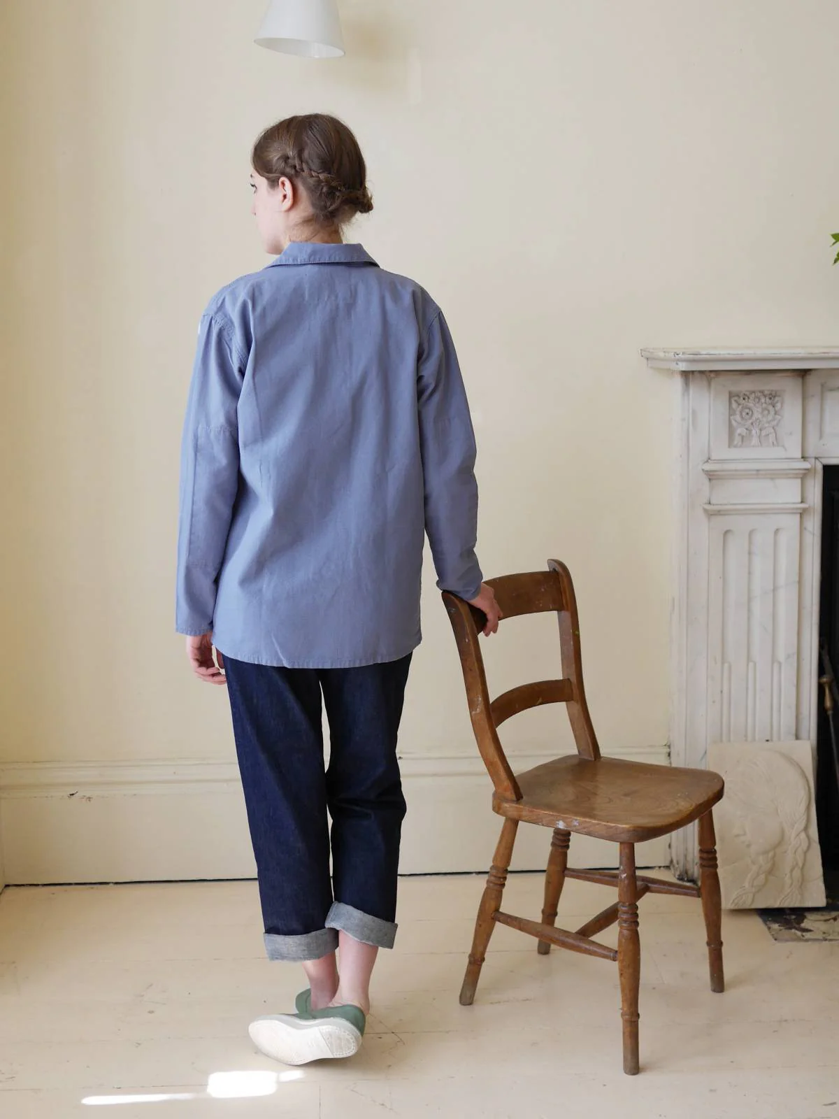 Made from organic cotton, this French style Work Shirt is designed to be worn as a traditional shirt or light jacket. With a contemporary utilitarian silhouette, and simple, deep front and breast pockets, with a reinforced elbow area for extra strength and durability. For both men and women.