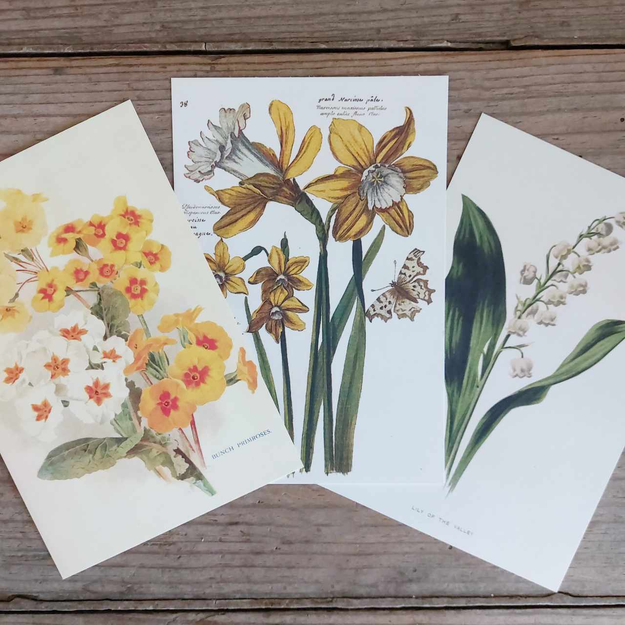 Vintage inspired floral postcards, available in a variety of pretty styles.